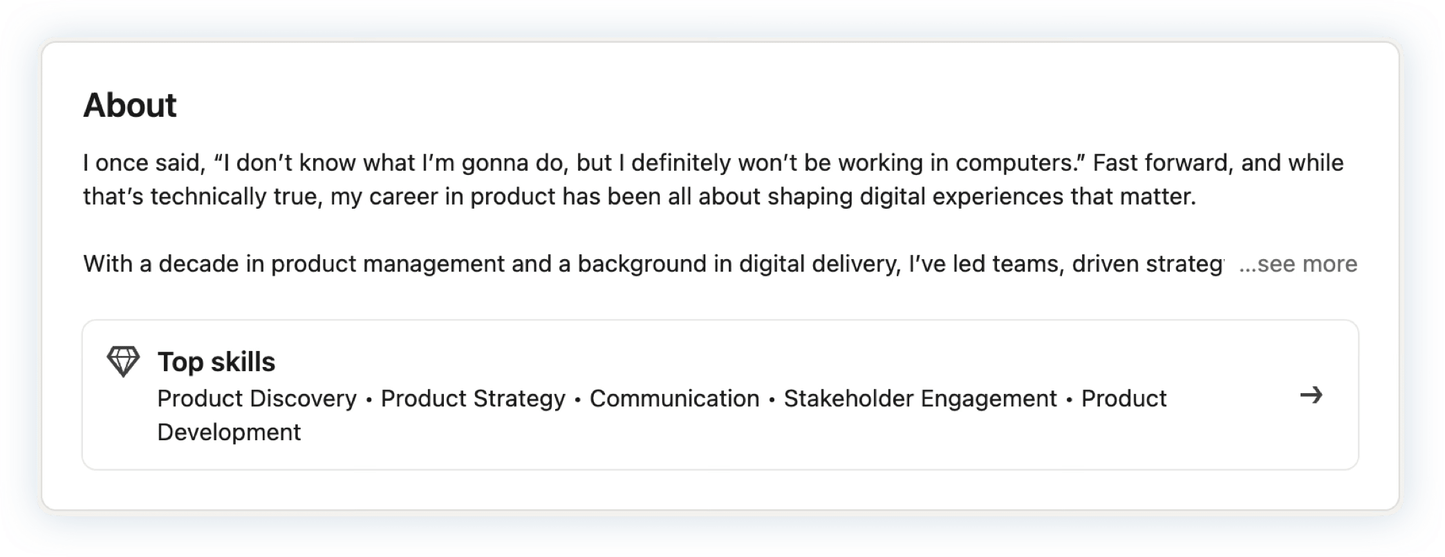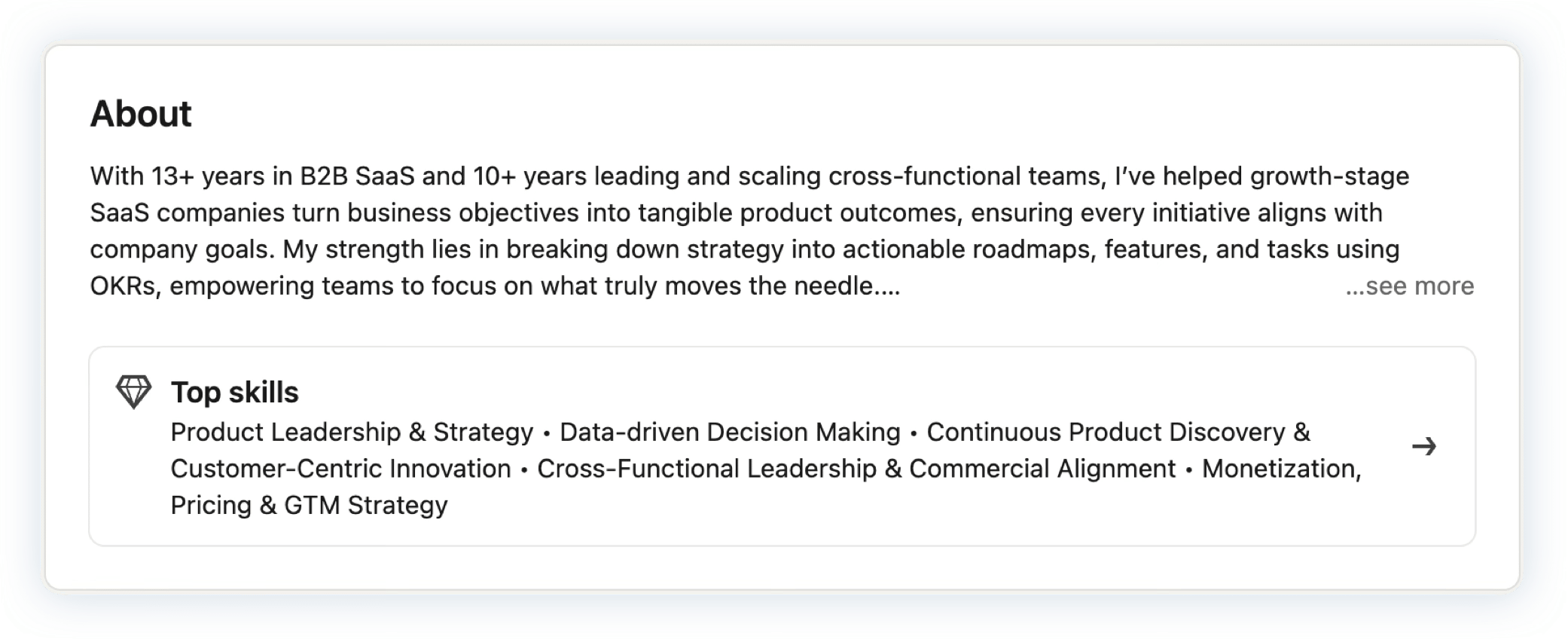 Also, they’re using Top skills, but none of them include product management, and some are really long.